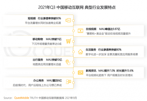 11月2日消息, QuestMobile发布了《2021中国移动互联网秋季大报告》,该报告对移动互联网新形态,以及2021年第三季度的发展进行了盘点。