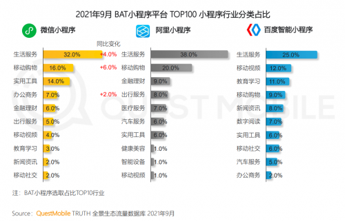 同时随着相关部门要求平台破除壁垒,巨头平台边界走向模糊化,这为打破APP孤岛效应打开了局面,给APP间渗透带来了新的路径,应用间流量互惠互利、企业间合作导流,已经成为趋势。BAT等平台内的小程序发展路径,正在从单点功能,走向多功能、多资源整合发展阶段。