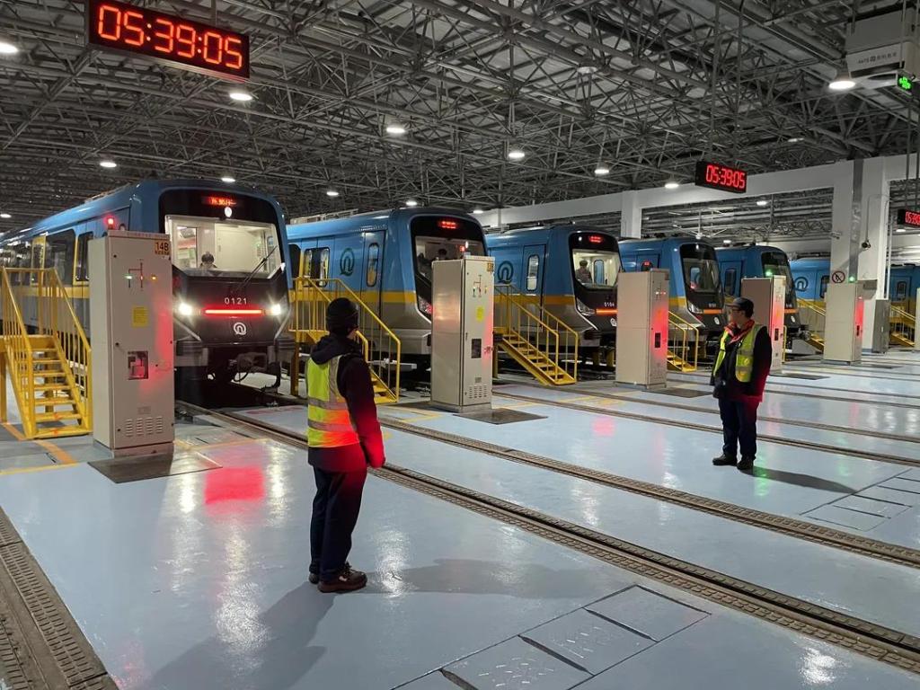 检修任务的完成并不代表着他们工作的结束,凌晨4点,室外温度已达零下8度,在安顺车辆段1号线运用库区的行车股道旁,检修工们的脸上没有丝毫松懈的状态,因为他们又开始了紧张有序的发车巡视保障作业。