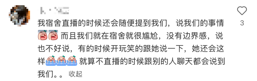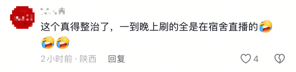 此外,长时间直播产生的噪声,也严重干扰了他人的正常作息和学习。有网友反映,室友从早播到晚,自己和其他室友被迫忍受声光污染,不堪其扰。