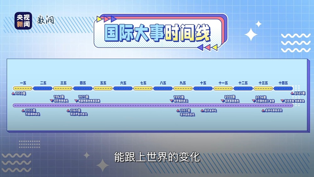 首先,把每一轮规划放到同时期发生的国际大事时间线里,发现很多政策不光解决眼前问题,它们还更具前瞻性,早早着眼未来。五年为周期,能跟上世界的变化。前五个五年计划集中力量进行工业化建设;“八五”计划纲要中对贸易和开放的强调,让国家更好适应世贸组织成立后的国际规则;“十一五”规划纲要为防范和化解系统性金融风险打下了基础。