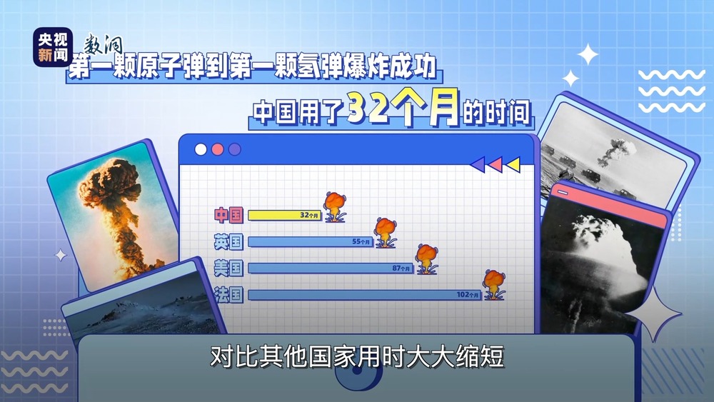 从第一颗原子弹到第一颗氢弹爆炸成功,中国用了32个月的时间,对比其他国家时间大大缩短。党的十八大以来,我国重点项目建设更是成果频出:中国空间站从建造到全面建成不到两年;国产大飞机成功实现商业运营;国产大型邮轮启航,“大国重器”多空间维度实现了突破。