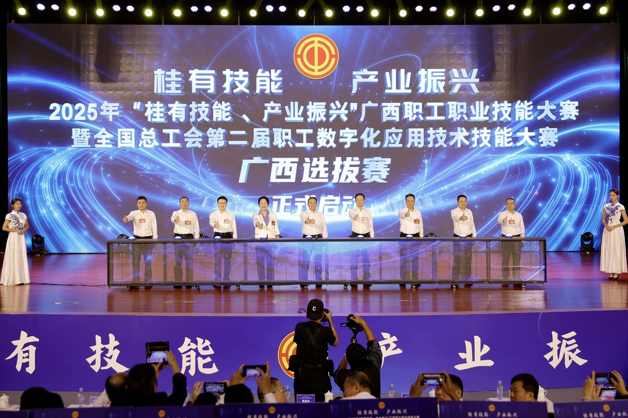 10月27日,2025年“桂有技能、产业振兴”广西职工职业技能大赛暨全国总工会第二届职工数字化应用技术技能大赛广西选拔赛在南宁职业技术大学开幕。自治区总工会党组书记、常务副主席韦永山宣布大赛开幕。