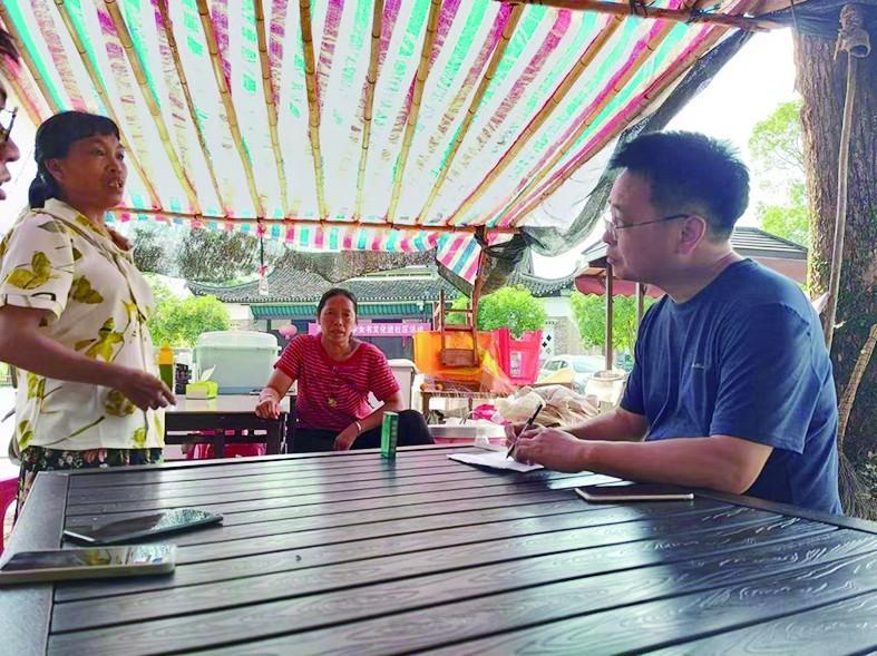 本报记者(右一)在湖南省江永县勾蓝瑶寨实地采访。 刘畅 摄