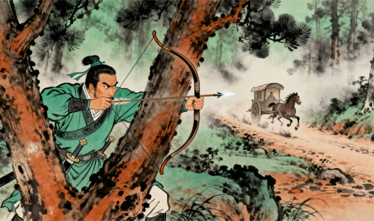春秋时期,齐桓公以“报一箭之仇”索回管仲并委以重任。(图 / 郭笑呈 AI 绘制)