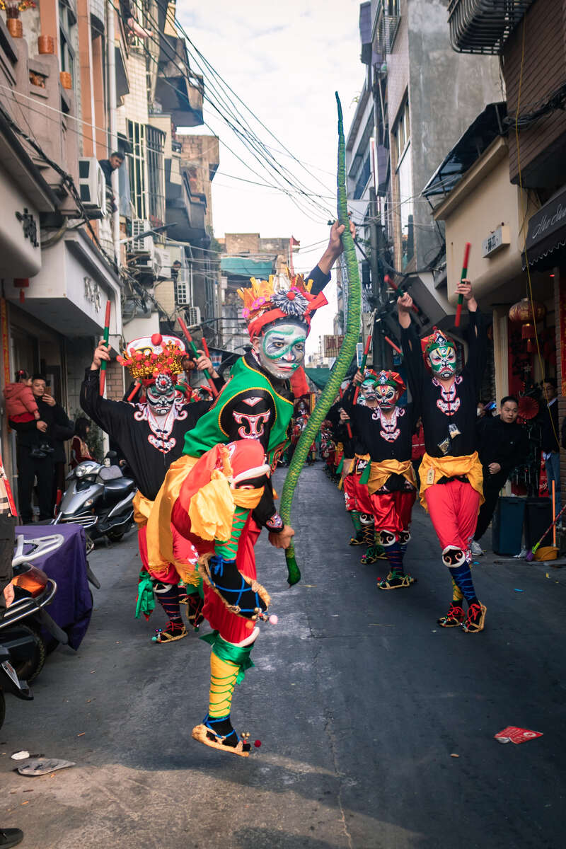即便一直以松散的形式存在,甲子英歌凭着小镇人的热情和情怀,在唱念做打、武术脸谱等多个行当传了一代又一代,师傅传徒弟、父传子。