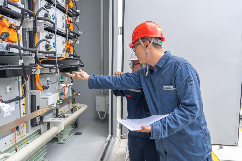 顾衍璋和团队正在对储能设备开展特巡检查。新华社发