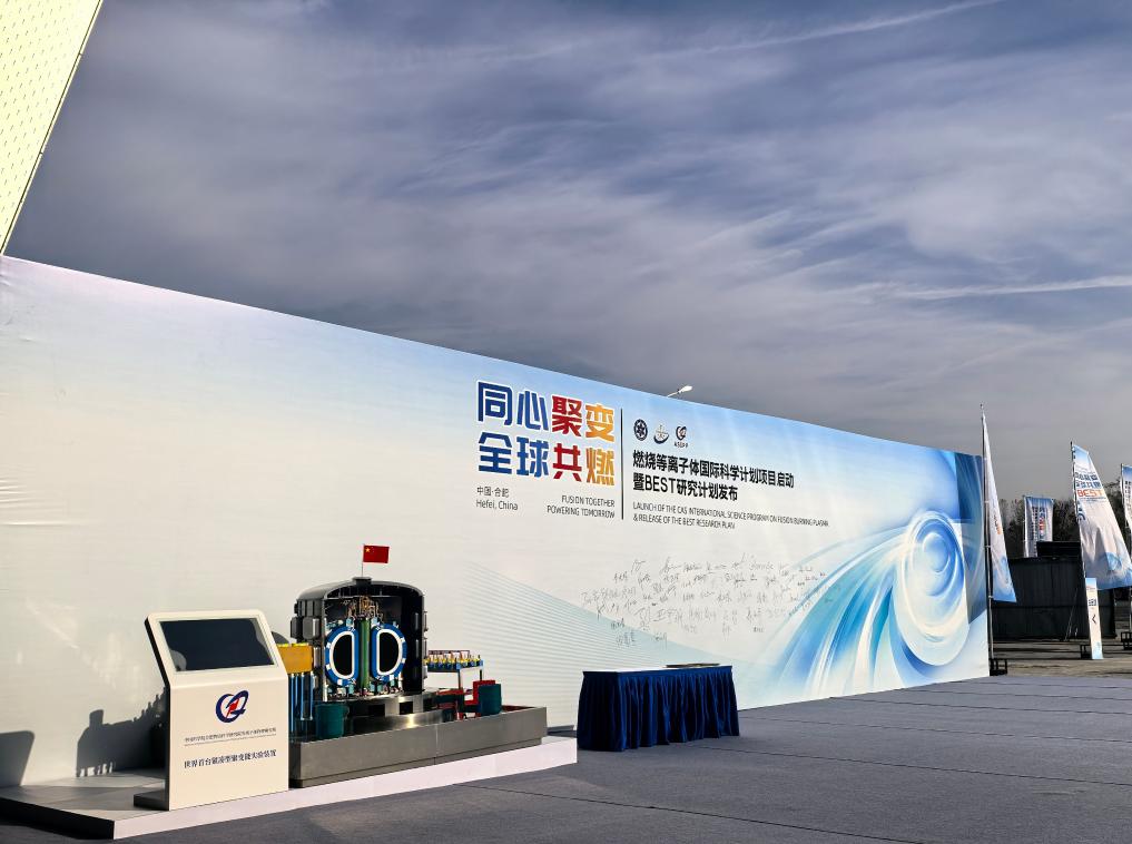11月24日在安徽合肥未来大科学城拍摄的燃烧等离子体国际科学计划项目启动暨紧凑型聚变能实验装置BEST研究计划发布活动现场。新华社记者 何曦悦 摄 中国科学院“燃烧等离子体”国际科学计划项目24日正式启动,面向全球开放包括紧凑型聚变能实验装置BEST在内的多个领先的聚变能实验装置及平台,协同攻关科学难题,携手点亮人类清洁能源的未来。 根据国际科学计划,中国科学院合肥物质科学研究院等离子体物理研究所将面向全球开放多个核聚变大科学装置平台,通过设立开放科研基金、资助高频次专家互访交流、搭建联合实验平台等,围绕聚变物理前沿问题开展合作研究。 在安徽合肥未来大科学城,来自法国、英国、德国等十余个国家的聚变科学家共同签署发布了《合肥聚变宣言》,倡导开放共享与合作共赢精神,鼓励各国的科研人员到中国开展聚变合作研究。 核聚变能模拟太阳的聚变反应释放能量,由于其原料氘在地球上极为丰富,且排放无污染,被誉为人类的“终极能源”。数十年来,科学家们通过磁约束等技术路线,在实验装置上探索聚变反应所需的高参数、长脉冲等严苛条件,但离真正实现聚变发电还有一定距离。 近年来,中国核聚变研究加速,多次打破世界纪录,等离子体物理研究所是全球最大“人造太阳”国际热核聚变实验堆(ITER)中方任务的主要承担单位之一,并与50多个国家120余家科研机构建立了稳定的合作关系。 中国科学院合肥物质科学研究院副院长、等离子体物理研究所所长宋云涛介绍,随着ITER及BEST项目的快速推进,聚变装置实验研究将要进入燃烧等离子体的新阶段,这是聚变工程研究的关键,这意味着核聚变像“火焰”一样,由反应本身产生的热量来维持,是未来持续发电的基础。 “这是‘无人区’的探索,将面临许多工程与物理挑战。”宋云涛说,牵头启动国际科学计划,既能依托中国超导托卡马克大科学团队的建制化优势,也有助于凝聚全球科学家的智慧与力量,协同突破聚变燃烧前沿物理难题。 BEST装置作为中国下一代“人造太阳”,承担“燃烧”使命。根据会上首次发布的BEST研究计划,该装置建成后,将进行氘氚燃烧等离子体实验研究,验证其长脉冲稳态运行能力,力求聚变功率达到20兆瓦至200兆瓦,实现产出能量大于消耗能量,演示聚变能发电。新华社合肥11月24日电(记者陈诺、何曦悦)