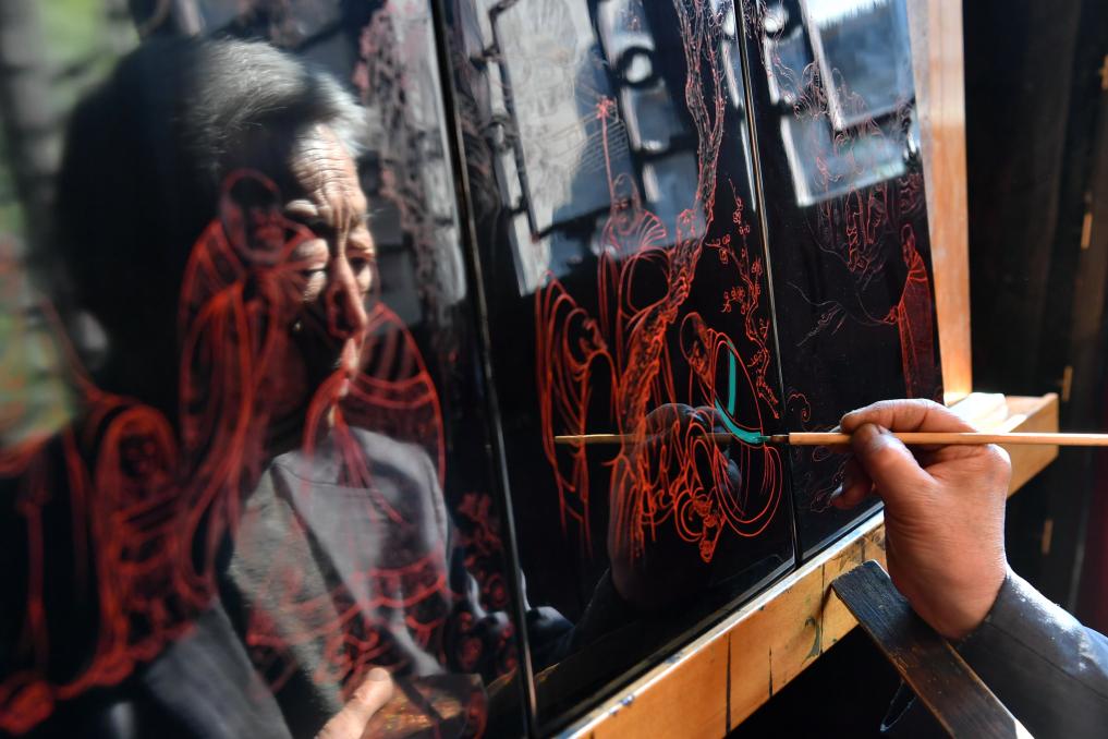 山西省非遗传承人在进行创作。