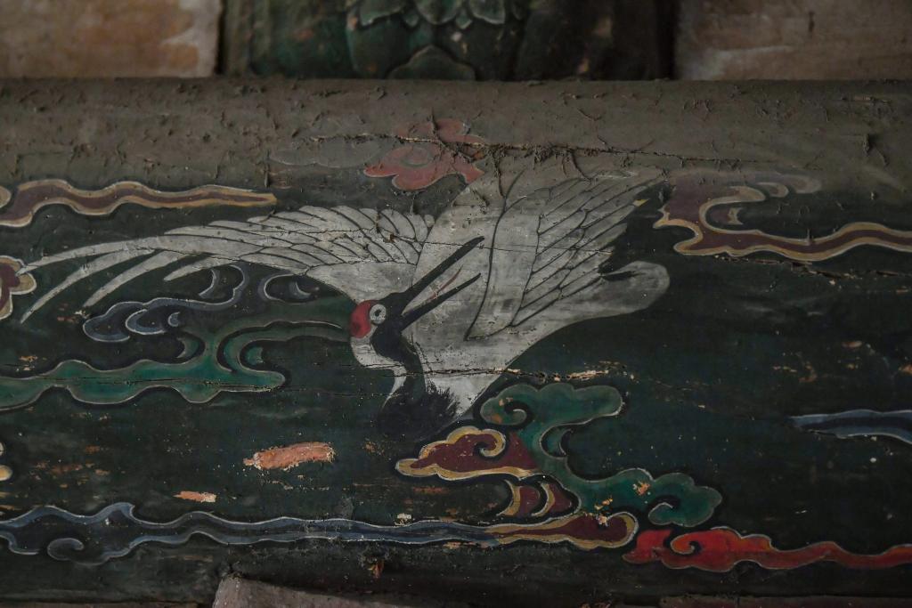 这是12月3日在山西省高平市仙翁庙拍摄的壁画中的鹤。
