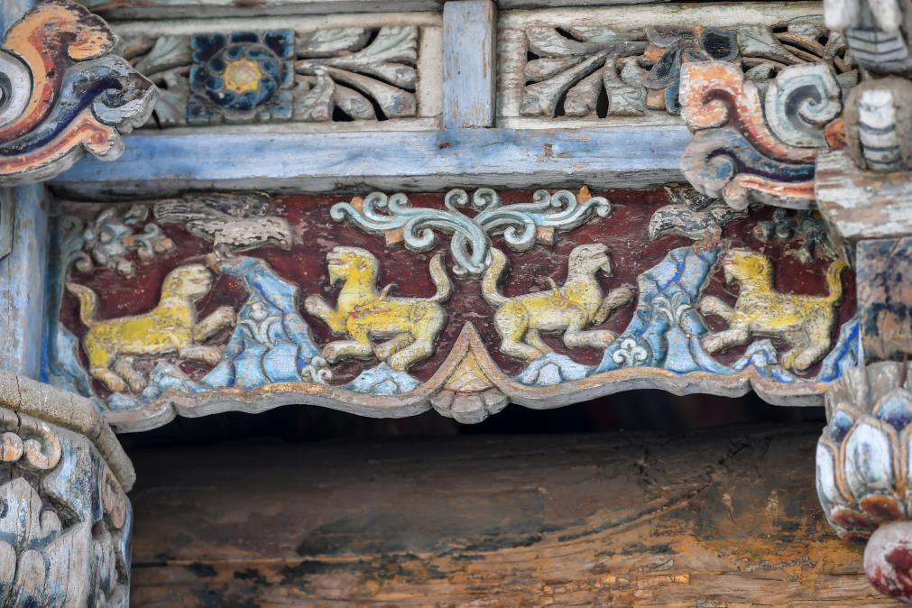 这是12月2日在山西省晋城市青莲寺拍摄的彩塑狮子。