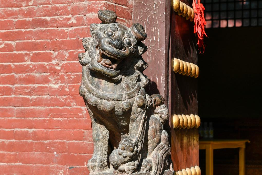 这是12月2日在山西省晋城市关帝庙拍摄的石狮子。