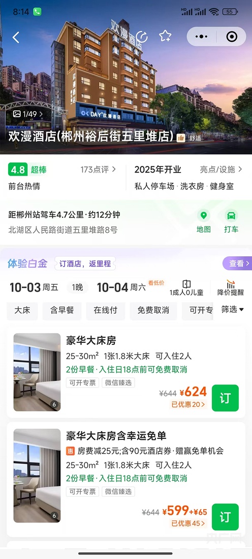 9月16日,湖南长沙的黄女士通过同程旅行平台,成功预订了郴州市北湖区裕后街欢漫酒店一间豪华大床房,入住日期为10月3日,价格为每晚160元。然而在9月19日,平台通知她,因“酒店调错价格”需取消该订单。黄女士对此表示拒绝,理由是“车票早已买好,当地酒店普遍涨价”。但次日,黄女士发现该订单已被单方面取消。