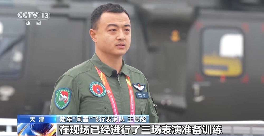 陆军“风雷”飞行表演队 王振超:在现场已经进行了三场表演准备训练,包含两场军地的全流程的演练,现在我们已经蓄势待发,准备完毕了。