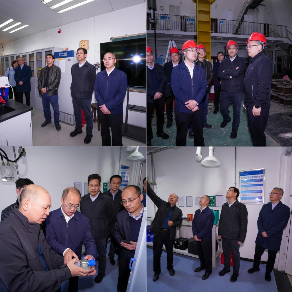 2026年4月10日上午,应急管理部安全协调司二级巡视员王法舰、教育部科技司一级巡视员张国辉一行来我校专题调研实验室安全工作,实地考察实验室并召开交流座谈会。副校长荆涛陪同调研,座谈会由实验室管理处丁鹏玉主持。