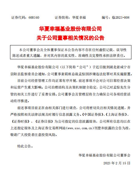 华夏幸福:董事兼联席总裁孟惊因涉嫌违法犯罪被留置