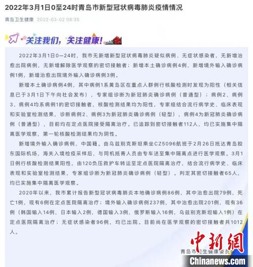 山东青岛新增本土确诊病例4例