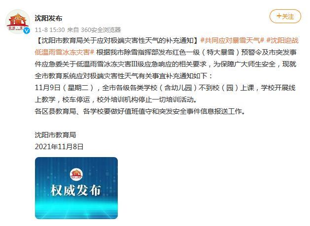 应对极端灾害性天气 11月9日沈阳各级各类学校开展线上教学
