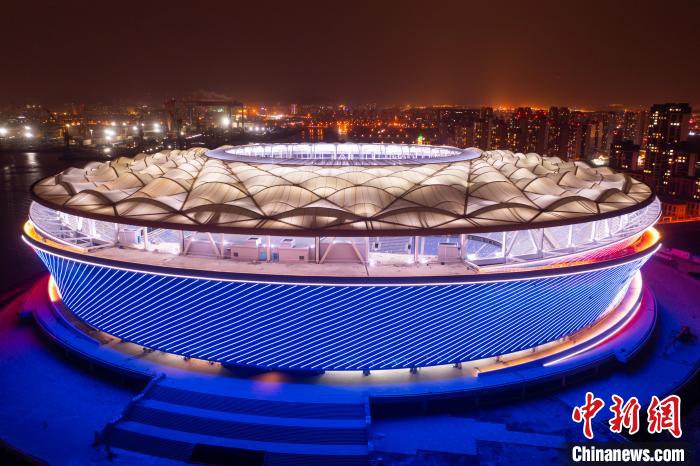 辽宁大连:三面环海的海边足球场亮灯迎“小年”