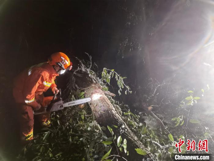 福建龙岩:冰雪灾害引发山区道路堵塞 消防员紧急救援