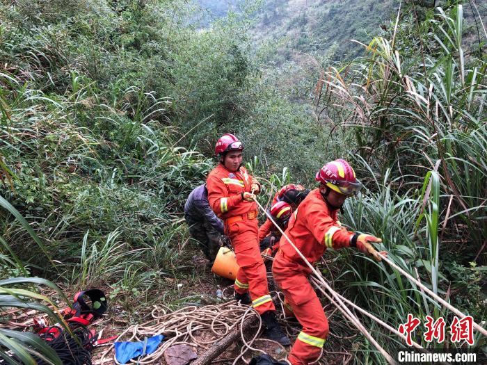 广西桂林:老人骑车掉落百米悬崖 消防部门“开路”营救