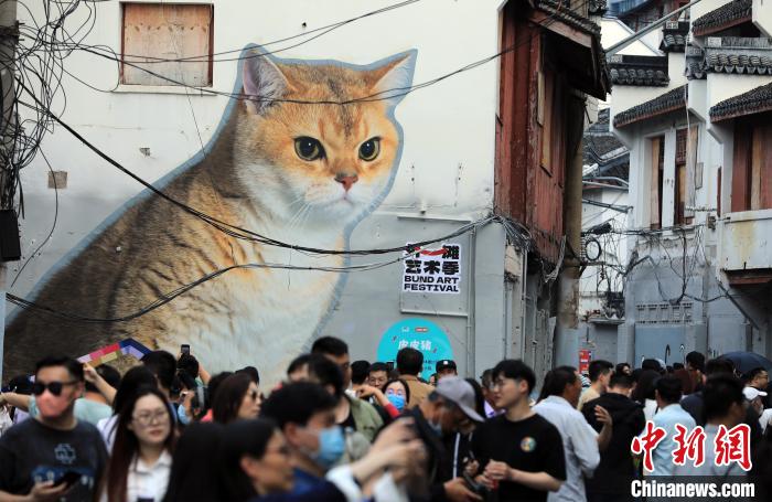 上海老街“变身”创意“猫街” 吸引民众前来打卡