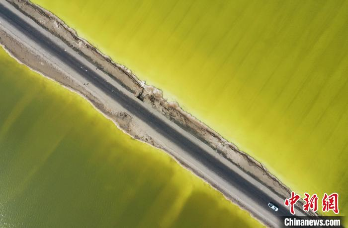 航拍察尔汗盐湖晶莹如玉