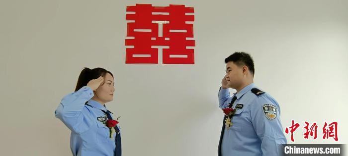 河北枣强一对辅警“新人”抗疫间隙举办“云婚礼”
