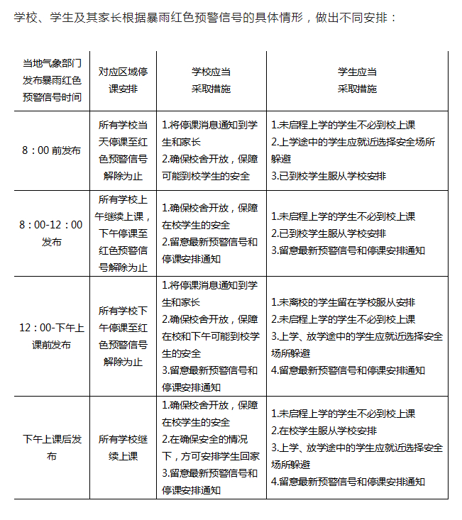 河南明确:在暴雨红色预警条件下要果断采取停课措施