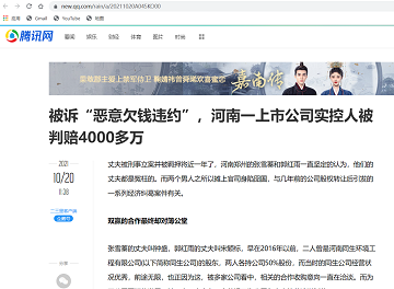 被诉“恶意欠钱违约”,河南一上市公司实控人被判赔4000多万