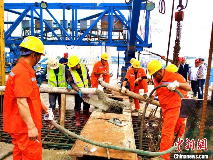 广东东莞市首座矮塔斜拉桥槎马特大桥主跨成功合龙