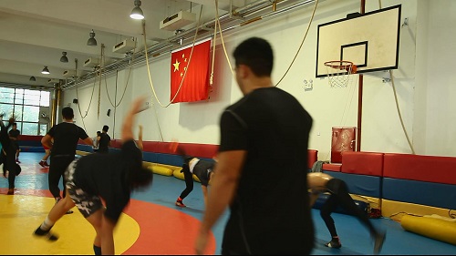 摔跤队员集体训练