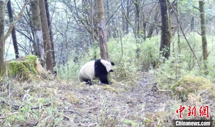 四川天全:野生大熊猫“嗅气味”找伴侣