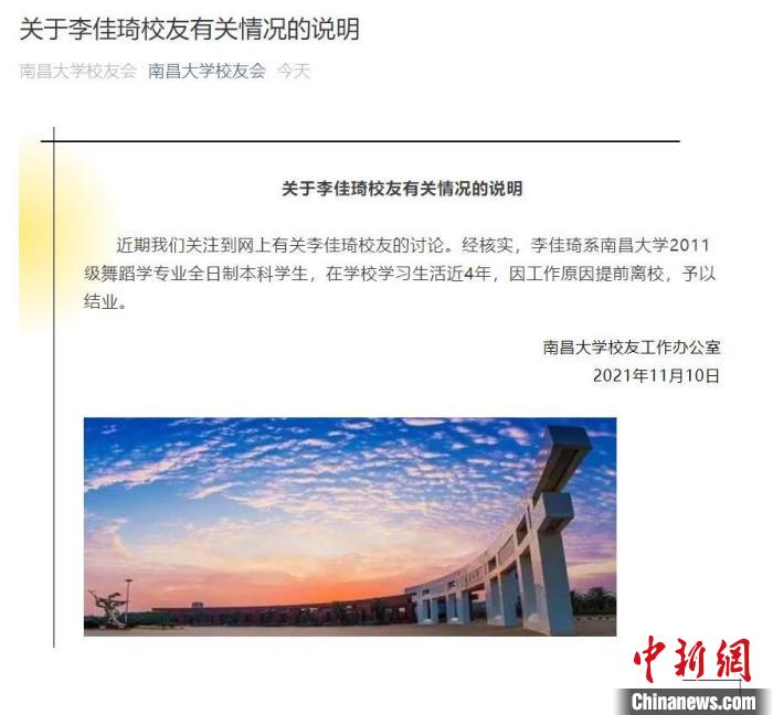 南昌大学校友会回应李佳琦学历:系舞蹈学专业本科生 提前离校