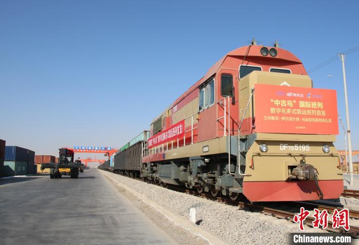 甘肃首列数字化“中吉乌”国际多式联运货运班列发车