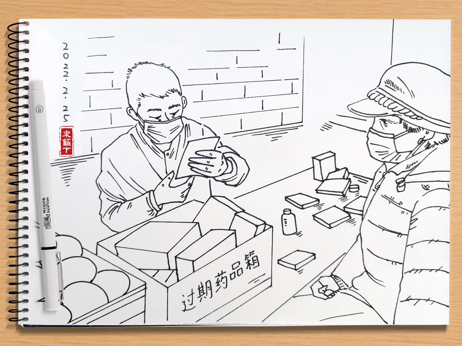 【挑战365天正能量速写画】第087期:00后大学生摆摊教农村老人识别过期药